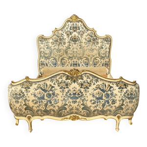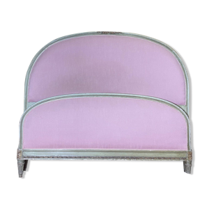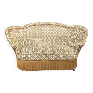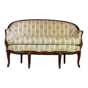 Canapé corbeille style Louis XV à dossier mouvementé, en cuir capitonné