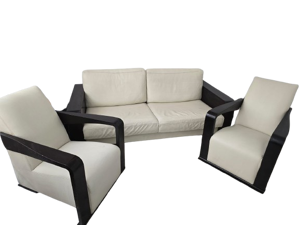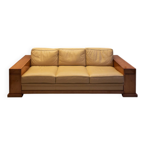 Canapé Key Largo Hugues Chevalier style Art déco en sycomore et suédine