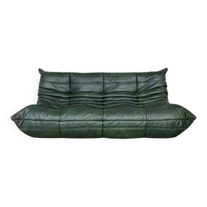 Canapé Togo en cuir marron moyen attribué à Michel Ducaroy pour Ligne Roset.