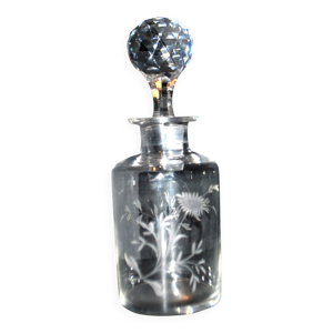 Carafe à whisky flacon pichet bouchon décor losanges, pointes, années 1960, 1970, verre