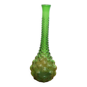 Carafe italienne Empoli en verre bullé vert années 70.