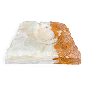 Cendrier vintage en onyx massif – Pierre naturelle sculptée, années 60/70