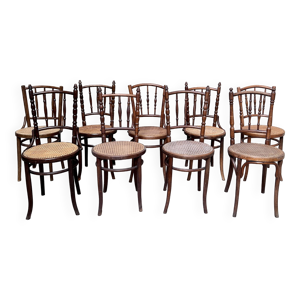 Chaise bistrot cannée ancienne en bois par les éditions Fischel