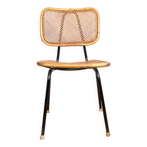 Chaise en métal et rotin