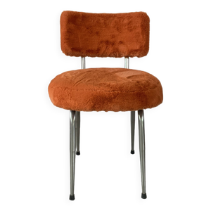 Chaise moumoute pied compas des années 50 revêtus de tissus moumoute de c