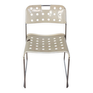 Chaise Omstak en acier thermolaqué rouge, conçue par Rodney Kinsman pour Bieffeplast — design industriel de 1980