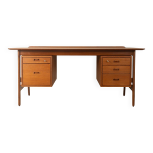 Chaise Vamo Sønderborg Sonja en teck et skaï noir, par Johannes Andersen