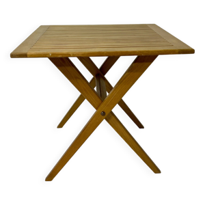 Chaises et table ciseaux en bois massif design vintage années 1970