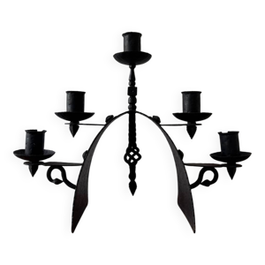 Chandelier brutaliste fer forgé ancien