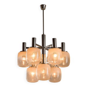Chandelier en verre et chrome des années 1960, style milieu de siècle.
