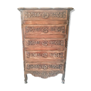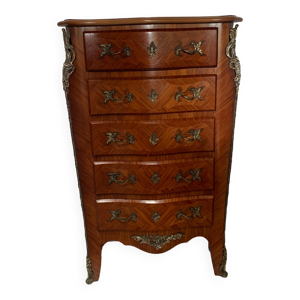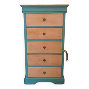 Chiffonier en bois peint coloris noir et gris France 1950 avec 5 tiroirs