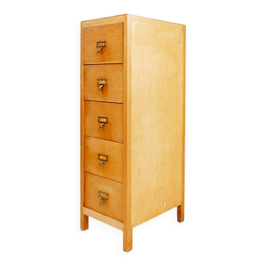 Classeur industriel en bois avec 30 boîtes de rangement originales en carton, Belgique, années 1920