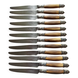 Coffret de 2 couteaux 12 grand 12 petits marche en corne Art Déco