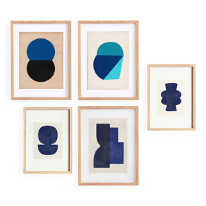 Collection de 4 peintures abstraites col. bleu clair signées Eawy