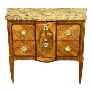 Commode a ressaut de style Transtion en bois marqueté XX siècle