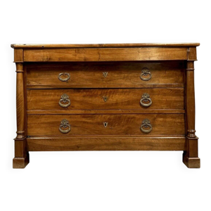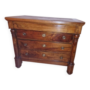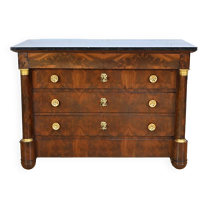 Commode d'époque Empire a colonnes détachées XIX siècle Commode acajou flammé