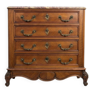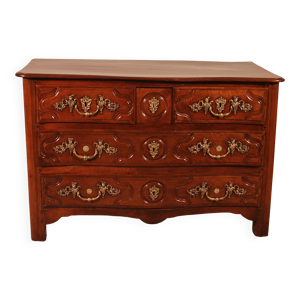 Commode en noyer Régence poignées aux chinois XVIIIe siècle