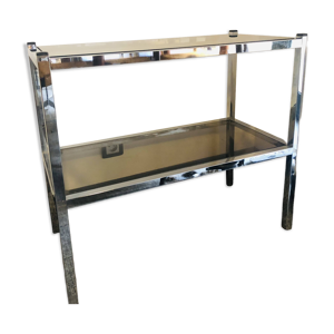 Console en verre fumé et pieds chromés, 1970.