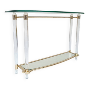 Console ''Hollywood Regency'' en laiton, plexiglas et verre, circa 1970