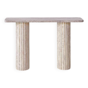 Console rectangulaire vintage en bois massif avec 6 tiroirs