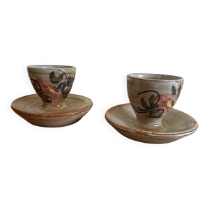 Coquetiers avec serviteur série de huit grès signés arts ceram grand feu XX