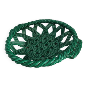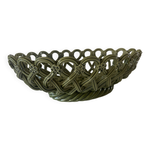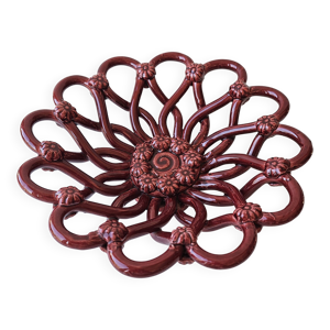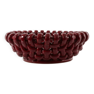 Coupe céramique tressée brun irisé et jaune/ centre de table/Coupe à fruits / Vallauris / Vintage