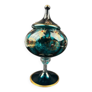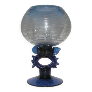 Coupe décorative Daum France – Pâte de cristal – Fleur bleue – Marque