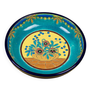 Coupe sur pied art déco formant vide-poches en métal argenté et bois noirci