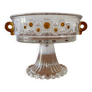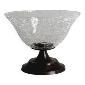 Coupe sur pied en verre pressé dépoli et verre transparent- pied chromé