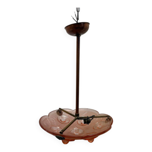 Degué : Lustre époque Art nouveau en fer forgé patiné, à décor végétal