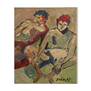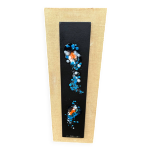 Denise Orlando : vase céramique noire & verre fondu 1950 vintage