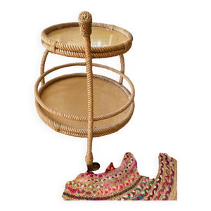Desserte servante bar roulettes 2 plateaux verre métal argent vintage 50