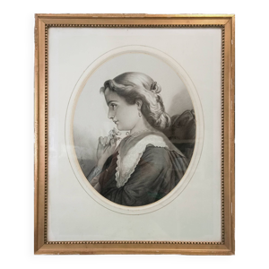 Dessin crayon et pastel xix papier : femme nue allongée sur un drap, signé adam (hugo ?), beaux arts