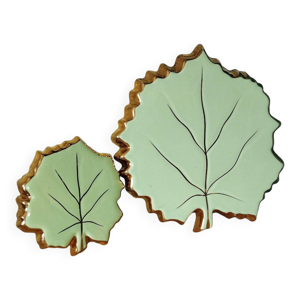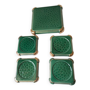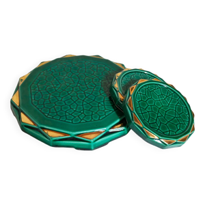 Dessous de plat et bouteille, porte-couteau barbotine tressée vert émeraude