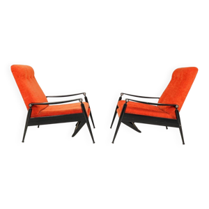 Deux fauteuils Mid-Century à blanc boucle après rénovation