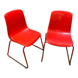 Duo de chaises vintage Grofilex enfant maternelle plastique jaune