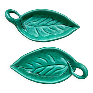 Duo de coupelles feuilles en barbotine verte de Vallauris vintages
