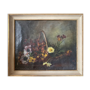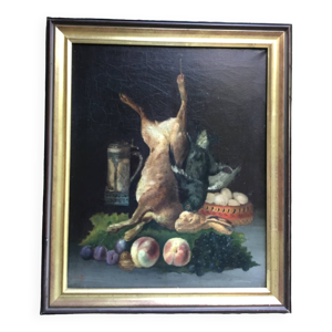École Française, Nature morte à la Courge et au broc, Huile sur toile encad