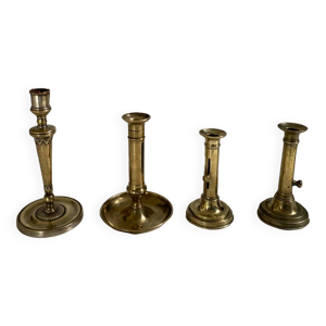 Ensemble de 3 bougeoirs en bronze et laiton XIXe siècle