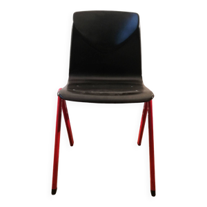 Ensemble de 6 chaises S30 Galvanitas rouge framboise et gris années 70