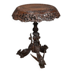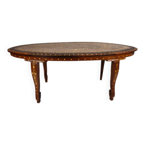 Fabulous Hoshiarpur anglo-indien en bois dur incrusté de laiton table basse occasionnelle