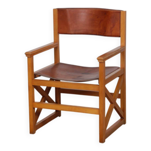 Fauteuil bridge bois hêtre skaÏ rouge 1950 vintage