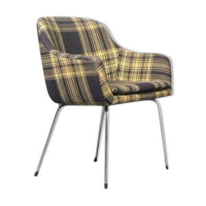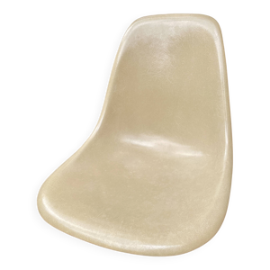 Fauteuil coque beige ivoire des années 70 sur pieds métal gris - magnifique