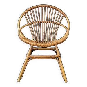 Fauteuil coquille osier rotin années 60/70 TBE