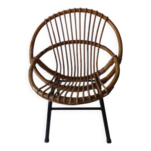 Fauteuil corbeille en rotin ancien