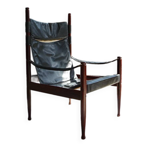 Fauteuil danois moderne en teck et cuir par Erik Buck pour Ørum Møbelfabrik