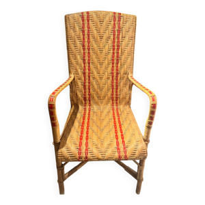 Fauteuil de bureau bistrot Fischel cannée cannage vintage 1950