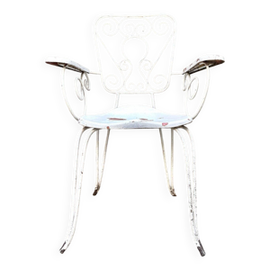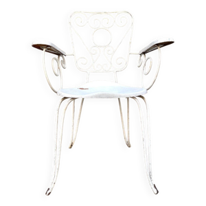 Fauteuil de jardin fer forgé à lames flexibles rivetées début XXè