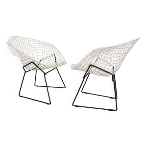 Fauteuil Diamond noir et blanc par Harry Bertoia édition Knoll