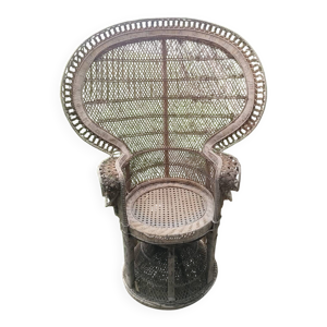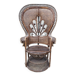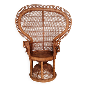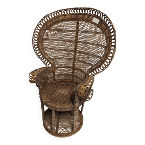 Fauteuil Emmanuelle, queue de paon (peacock), rotin, wengé, vintage, années 70